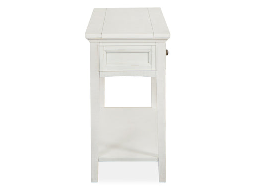 Tinley Park Collection by Magnussen Furniture Dove Tail Grey finish Made up of pine solids and metal Weathered bronze hardware 1 Drawer Wooden gui...