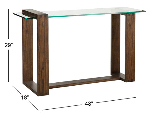 Sofa Table, Dark WalnutFeatures: Contemporary Black/Dark Walnut Tempered Glass,Paper Veneer,Others Black Glass Top Open Bottom Self Rectangular Bas...