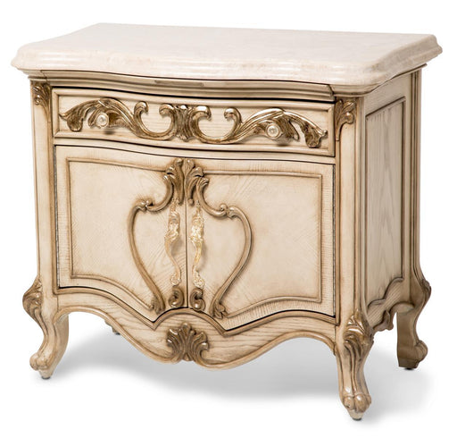 Platine de Royale Collection by Aico Furniture Champagne finish 2 Doors Pull out laminate tray under top Curved fronts and sides Ash veneer with s...