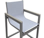 Marina Outdoor Patio Barstool in Gray Powder Coated Finish with Gray Sling Textilene and Gray Wood Accent Arms