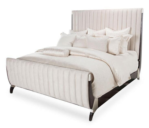 Melrose Plaza Collection by AICO Dove finish Used rich fabrics and luxury textured vinyl in the upholstered headboard panel Stunning crystallize...