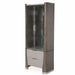 - Drawer fronts are wrapped in frost gray faux shagreen