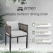 Elevate your outdoor dining experience with the Alegria Patio Dining Chairs from Armen Living. These outdoor dining chairs with cushions conveniently come in a set of 2 and bring the warmth of natural textures to a sleek modern design. This beautiful piece of outdoor furniture remains a perfect fit for any outside dining or lounging area. The modern and clean line silhouette of these dining chairs is complemented by unique woven rope arms.