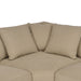 The dressmaker style sofa skirt design feature resembles the careful tailoring and attention to detail one would expect from a dressmaker or a seamstress. Their primary function is to conceal the legs and any structural components underneath the sofa, providing a more cohesive and seamless appearance. This modular sectional sofa includes 5 toss pillows and is available in 3 neutral color options, including Slate Gray, Pearl, and Sahara Brown.