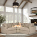 - SEAT CONSTRUCTION - Meticulously crafted to distribute weight evenly, this sectional sofa features an eight-way hand-tied spring system that ensures lasting durability, prevents sagging, and provides enduring comfort and support.