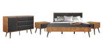Coco Rustic 4 piece Upholstered Platform Bedroom Set in King with Dresser and 2 Nightstands
