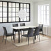 The dining table can easily extend to seat up to four to six individuals. The Giana Kash dining set is available in 5 and 7 piece set configurations and features a camren gray Sintered Stone table top with black base and your choice of taupe gray, brown, or black faux leather upholstery.