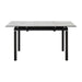 The Giana dining table features an extendable, rectangular tabletop, perched upon a crisp black metal base. The tabletop is crafted in Carmen Gray Sintered Stone to offer a luxe appeal with easy maintenance. This tabletop is resistant to etching, scratches, burns, and stains as a sturdy yet elegant alternative to quartz. With a durable construction and versatile appeal, our dining table is perfect for both casual and formal meals in a kitchen, dining room, or living space.