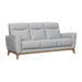 The minimalist wood base and legs elevate its profile, creating an open and spacious feel. Measuring a generous 83 inches in width, the Greyson sofa provides ample seating for up to three. Whether you're hosting a movie night, entertaining guests, or simply relaxing, this sofa offers plenty of room for everyone to enjoy. Sink into its plush cushions and experience the unparalleled comfort. Leather upholstery adds timeless elegance to any interior.