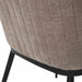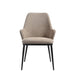Designed with comfort and statement appeal in mind, the Mae Modern Dining Chair with Arms offers a refined twist on the collection’s clean aesthetic. Fully upholstered in a soft almond fabric, this version introduces integrated half arms that flow gracefully from the curved backrest — creating a supportive, enveloping seat that invites extended use. The chair’s sculptural form is paired with flared black powder-coated metal legs that bring balance and durability to the silhouette.