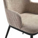 - Arm-integrated version of the Mae chair refined almond fabric with extra support, perfect for head-of-table or statement seating.