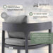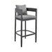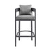 The Menorca outdoor bar stool has a dark gray powder coated finish and dark gray cushions, it can support up to 250lbs and is available in your choice of 26 or 30-inch seat heights.