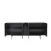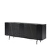 Completing the set is the 4-door sideboard — a modern storage piece that pairs a jet-black wood frame with richly veined sintered stone door panels. With a generously scaled interior and multiple shelves, it offers ample space for dinnerware, hosting essentials, or decor. The natural textures and minimalist silhouette echo the materials of the dining table for a unified visual flow.