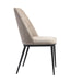 Upholstered in soft almond fabric, each chair showcases a gently curved backrest that supports natural posture, while flared black metal legs add contrast and structural integrity. The armless chairs offer versatility and space-saving placement, while the armchairs provide an elevated seating experience perfect for the head of the table. Reinforced with wood and foam-padded for comfort, the chairs combine sleek silhouettes with lasting support.