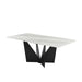 Completing the set is the Olivia 3-door sideboard, a standout piece that balances open storage with closed functionality. Its sleek black frame is paired with three tempered glass doors in a marble-effect white finish, echoing the table’s glass top for a cohesive visual narrative. Inside, ample cabinet space offers storage for dinnerware, linens, and hosting essentials, while the open shelving adds space to showcase decorative pieces.