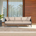 The water-resistant capabilities and easily removable cushion covers make maintenance effortless, allowing you to enjoy the Orbit Outdoor Patio Sofa with ease. Elevate your outdoor aesthetic with the Orbit Outdoor Patio Sofa in Weathered Eucalyptus Wood and Taupe Upholstery.