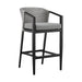 The dark gray cushions not only feature high density foam that will allow for many hours of comfortable seating; the cushions also feature a zipper closure that allows for easy removal and cleaning making this bar stool with back the ideal piece of outdoor furniture! The Palma bar stools are available in your choice of 26 or 30-inch seat heights and feature a black finish, with dark gray cushions and gray wicker. The Palma can support up to 250lbs per stool.