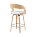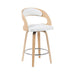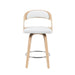 Shelly Modern Counter Height Swivel Bar Stool in Patterned Oak Finish with White Faux Leather Upholstered Seat