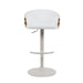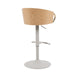 Solstice Modern Adjustable Swivel Barstool in Ivory Finish with White Upholstered Seat, Patterned Oak Wood Accents
