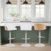 Both stools feature a full 360-swivel and adjustable gas-lift mechanism, allowing for seamless movement and customizable comfort at both counter and bar height levels. The sturdy pedestal base ensures stability without sacrificing visual lightness, while the mid-rise backrest supports relaxed postures during long dinners or casual conversations.