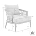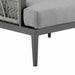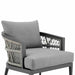 The solution-dyed acrylic fabric ensures vibrant colors and resistance to fading, offering lasting beauty in the face of changing weather conditions. Whether bathed in sunlight or facing unexpected rain, this armchair remains a reliable centerpiece for your outdoor gatherings. The incorporation of light gray rope detailing adds unique dimension to the design, creating a captivating contrast with the sleek aluminum frame.