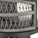 Whether bathed in sunlight or facing unexpected rain, this stool stands as a steadfast and stylish seating solution for your patio or outdoor bar area. The incorporation of rope detailing adds a distinctive tactile dimension to the design, creating a visually appealing contrast with the smooth aluminum frame. Paired with removable cushions, the Zella Swivel Stool invites you to relax in both style and comfort, providing a luxurious seating option for your outdoor gatherings.