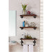 The Armen Living Conrad industrial 3-piece floating wall shelf is a novel piece, perfect for enhancing the aesthetic flare of any contemporary living space. This beautiful modern shelf is composed of three walnut-finished, pinewood sections, held together and accented by gray coat finished metal piping. This combination of materials is as durable as it is novel, allowing for the storage of a wide variety of items.