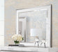 AICO Marquee Wall Mirror in Cloud White KI-MRQE260-108. Complete the look! The Marquee Dresser and Mirror set will change the way you look at bedroom design. With tiered top drawers, a beautiful mix of matte and gloss lacquer finishes, and brushed stainless steel, this pair is exactly what you want in your contemporary living space.