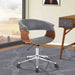 Bellevue Mid-Century Office Chair in Chrome Finish with Gray Faux Leather and Walnut Veneer