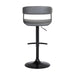 Calista Adjustable Bar Stool in Gray Faux Leather with Black Metal