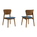 Kalia Wood Dining Chair in Walnut Finish with Blue Fabric - Set of 2