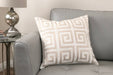 The Armen Living Laguna feather and down decorative throw pillow features a classical pattern design reminiscent of Greek artwork. The pillow's soft feather and down stuffing offers an exceptional degree of comfort and finds good company with the pillow case's sleek Applique Embroidery fabric. The Laguna features a convenient zipper that allows you to easily remove and wash the pillow case if necessary.