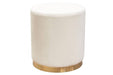 Sorbet Round Accent Ottoman in Cream Velvet w/ Gold Metal Band Accent
