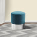 Tabitha Contemporary Round Ottoman in Brushed Stainless Steel with Green Velvet