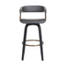 Topanga 26" Swivel Black Wood Counter Stool in Gray Faux Leather with Golden Bronze Metal