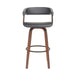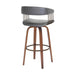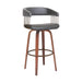 Topanga 30.5" Swivel Walnut Wood Bar Stool in Gray Faux Leather with Golden Bronze Metal