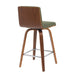 Vienna Modern Counter Height Swivel Bar Stool with Vintage Green Upholstered Seat and Walnut Finished Wood Frame