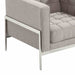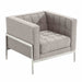The Armen Living Andre mid-century side chair is a stunning example of contemporary beauty sure to make a statement in any modern living room or lounge area. The Andre's stainless steel metal frame is both stylish and sturdy. The side chair's tweed upholstery is beautifully button tufted and plush, presenting an inviting aesthetic and an exceptional level of comfort. Pair the Andre side chair with the Andre sofa and loveseat for added cohesion and harmony. Available in Gray.