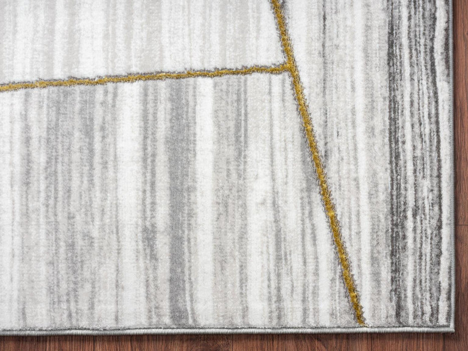 This trendy rug is made from Heatset Polypropylene and Polyester with a Jute backing. This beautifully constructed rug is machine made with an edge serged finish. This rug rug will be the perfect enhancement to your living space. Available sizes: 2'2'' X 7'8'', 3'9'' X 5'9'', 5'2'' X 7'5'' and 7'10'' X 10'10'' Beautiful geometric design Colors: Grey, White and Gold Machine made design 100% Polypropylene front/li> 100% Jute backing Pile Height: 0.28 inches Professional cleaning and rug pad recommended