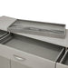- Top is made with cultured marble, and case bottom is trimmed in stainless steel