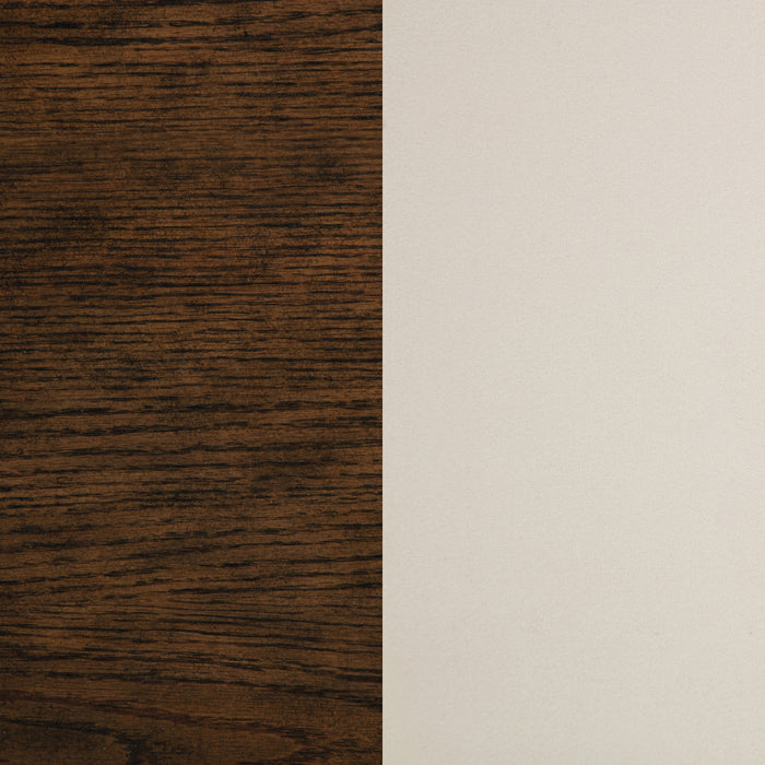 The combination of ivory upholstery and a rich brown wood finish creates clean, precise style for this traditional round dining set. Its crafted in quality rubberwood and engineered wood, delivering strength and durability paired with turned details. The table features a spacious r with a decorative edge and charming base design. Chairs add rounded, framed backs and plush foam cushions, perfect for leisurely meals with family and friends. The set lends handsome, refined character in your dining room or kitchen. Key Features: • This traditional round dining set delivers refined but approachable aesthetics to your home • A rich brown finish is deep and dark, offering warmth and timeless character • Turned style legs, stretchers and table base add curvature and detail for an elegant presentation • A round tabletop features a decorative edge and provides seating for four to six • Set is made from durable and strong rubberwood, engineered wood and oak veneer