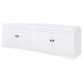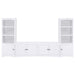 Transform your living space with this beautifully crafted entertainment center, designed to combine style and functionality for your media needs. Anchored by a 78-inch TV stand, this set is perfect for hosting up to an 85-inch television, offering a spacious and organized solution for your home. The TV stand features four doors that open to adjustable shelves, complete with cord management openings, making it easy to keep your media and gaming components neatly arranged. Flanked by two matching media towers, the entertainment center provides additional storage and display options with a mix of open shelving and concealed cabinet space. Finished in a warm, neutral tone, this entertainment center blends seamlessly with any decor, creating an inviting focal point in your living room. Key Features: • Three-piece entertainment center includes a 78-inch TV stand and two media towers • TV stand accommodates up to an 85-inch television with ample storage • Four-door TV stand with adjustable shelves and cord management openings • Media towers feature three open shelves and a one-door cabinet with adjustable shelving • White finish complements any decor, offering a stylish and cohesive look