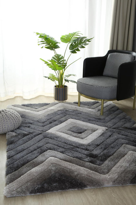 The Mateos Shag is a thick, lush shag that feels great under foot! The contemporary designed rug is constructed from 100% polyester. Colors: Brown and Grey Available in a variety of sizes Beautiful, lush shag in fun pattern 100% polyester front Cotton Backing Pile Height: 0.98 inches