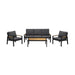 Panama Outdoor 4 Piece Black Aluminum Sofa Seating Set with Dark Gray Olefin