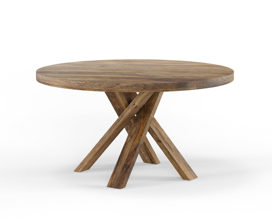 Bring a touch of global-inspired elegance to your dining room with the 60 Inch Round Dining Table. This handcrafted table is made from solid mango, giving it a unique aesthetic with natural variations of color, wood grain, and knots. The round table is paired with a base of artfully angled legs, creating a bold, simple silhouette with sleek angular details for distinctive beauty. Handcrafted by artisans, each table is a true work of art that will add character to your home. Exquisitely finished by hand, this table is sanded, stained, and sealed with a lacquer top coat, ensuring a durable and long-lasting surface. The wood is kiln-dried to minimize warping and splitting, ensuring that this table will be a beloved piece in your home for years to come. Create a warm and inviting dining experience with this 60 Inch Round Dining Table.