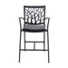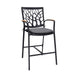 Revamp the appearance of your outdoor dining space with this Portals Outdoor Arm Barstool in Black with Natural Teak Wood Accent Finish. The sleek silhouette pairs thin arms topped with solid teak accent pieces. With a powder-coated aluminum frame, this stool resists weather conditions to withstand placement on your deck or patio. The Portals Outdoor Arm Barstool in Black with Natural Teak Wood Accent Finish features a unique back style that is sure to please and has a removable cushion.
