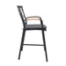 Portals Outdoor Patio Aluminum Barstool in Black with Natural Teak Wood Accent and Cushions